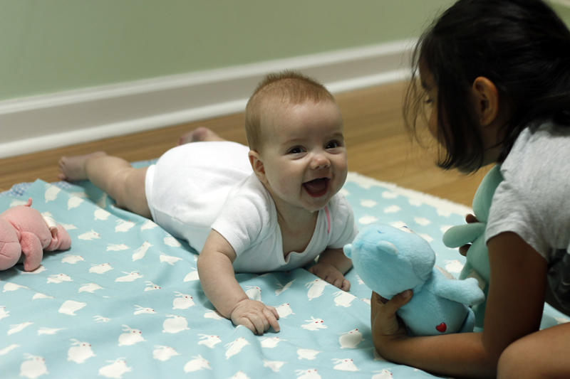 Biggest Challenge: We've really only had little challenges this month. I think our schedule has smoothed out the times that would have been rough. She has some teething fussiness (no teeth yet) and is taking some time to adapt to napping in her crib. That's all!
