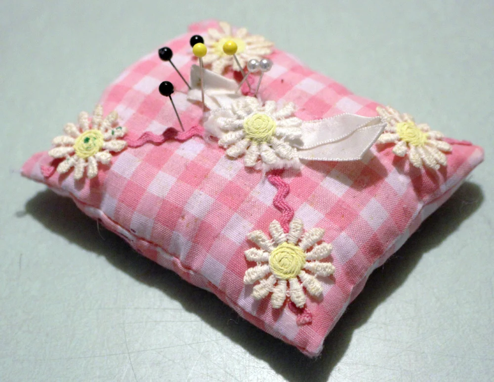 I learned to sew fairly young, elementary school-age, I'd say, with questionable success. My first project (that I know of) was a pincushion made for my mom out of pink gingham and ric-rac. It wasn't much as far as pincushions go, but she used it for decades and it now has a spot on my sewing table. It really highlights how meaningful the smallest of things can be when they're hand-made.