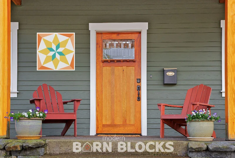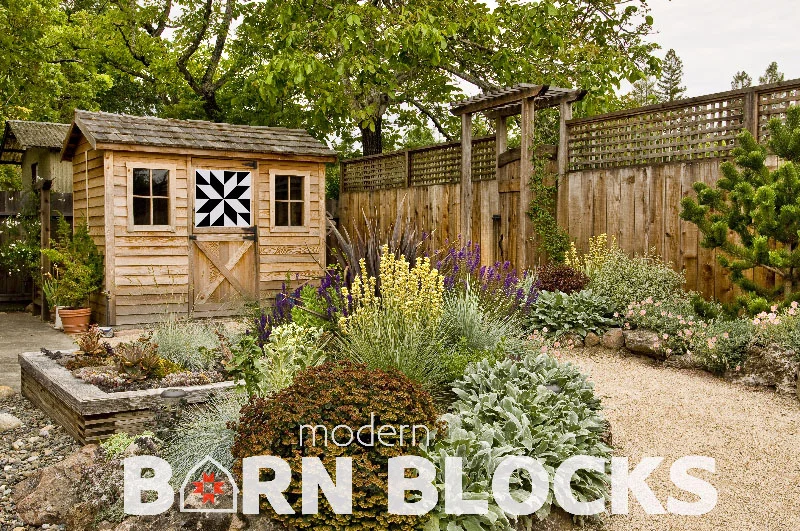 Now I happen to own an old barn. An old tumbling-down barn that makes for great photo backgrounds, but not much else. Even so, I've thought how cool it would be to put up a barn quilt. Cool, but not so practical as you can't see our barn at all from the street! These little Modern Barn Blocks have much of the fun of the concept, without all the work and feel more suited to private backyard spaces too.