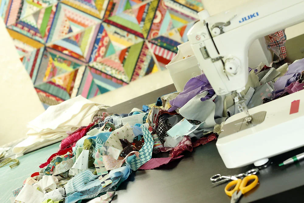 But, lo, there are more scraps and more batting bits leftover! Dear friends, these are ALL of my remaining string scraps. Look how diminutive they are gathered on my table! (OK, there are a few in those white bins too.) Already an accomplishment! But it is too many to toss, and as I am committed to a use-it-or-lose-it mentality with this project...