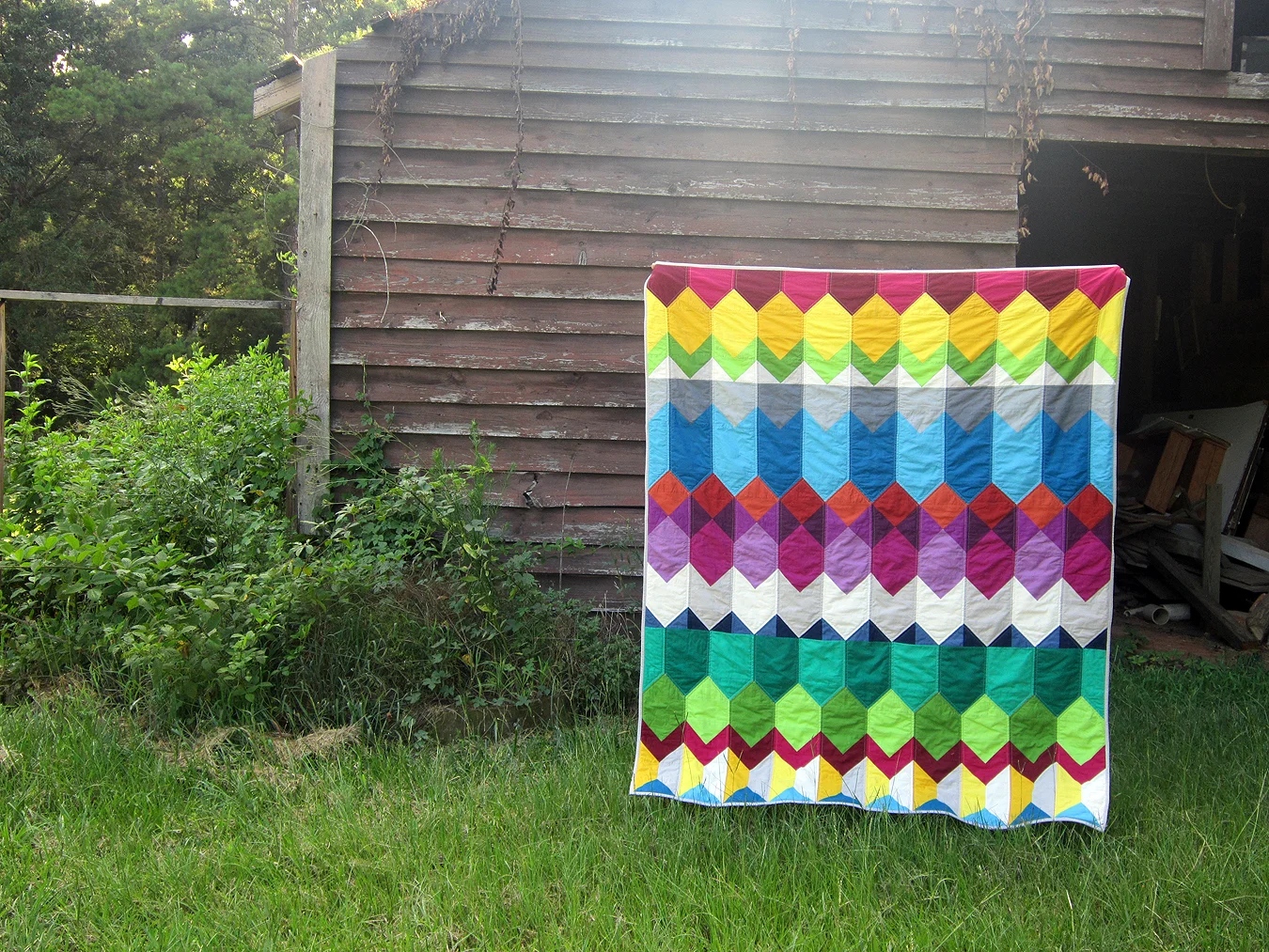 In 2014, Robert Kaufman, makers of Kona Cotton, invited a bunch of quilters to design quilts for their 75th anniversary celebration. I designed an all-solids quilt called Cascade, which is a play on the flying geese block.