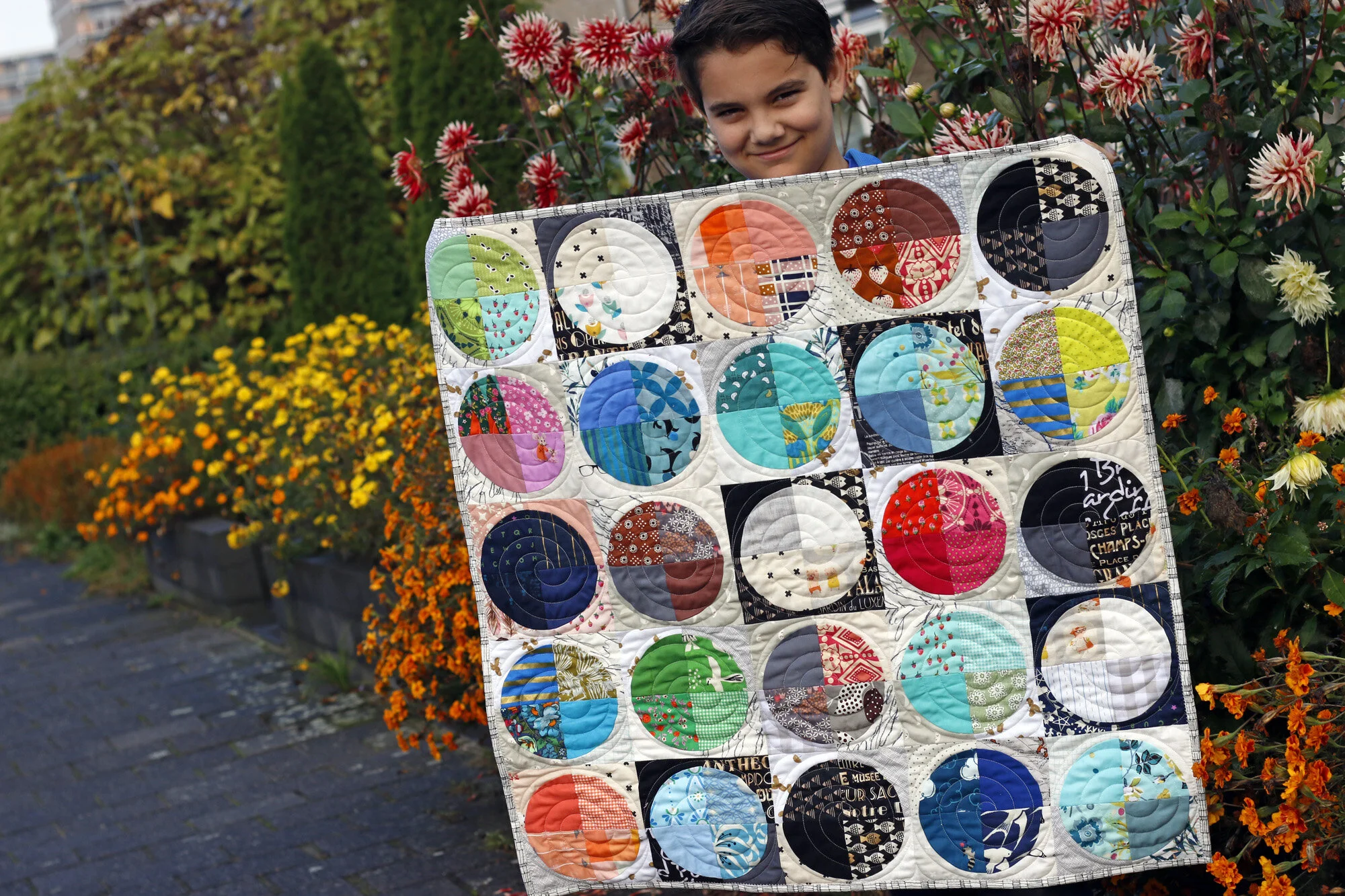 Sending smiles from myself and from my handsome quilt-holder on this glowing autumnal morning. We wish you a week full of color!