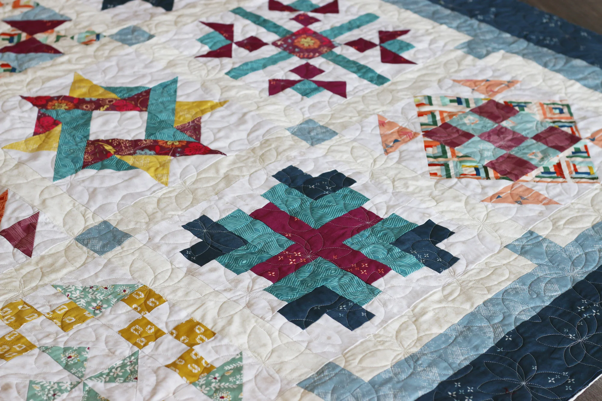 Karin prefers more open quilting, so we settled on my Lily quilting design. It’s naturally more open and looks pretty scaled up to allow the blocks plenty of room to breathe. It finishes the quilt with a light touch. I suspect it will be quite cozy!