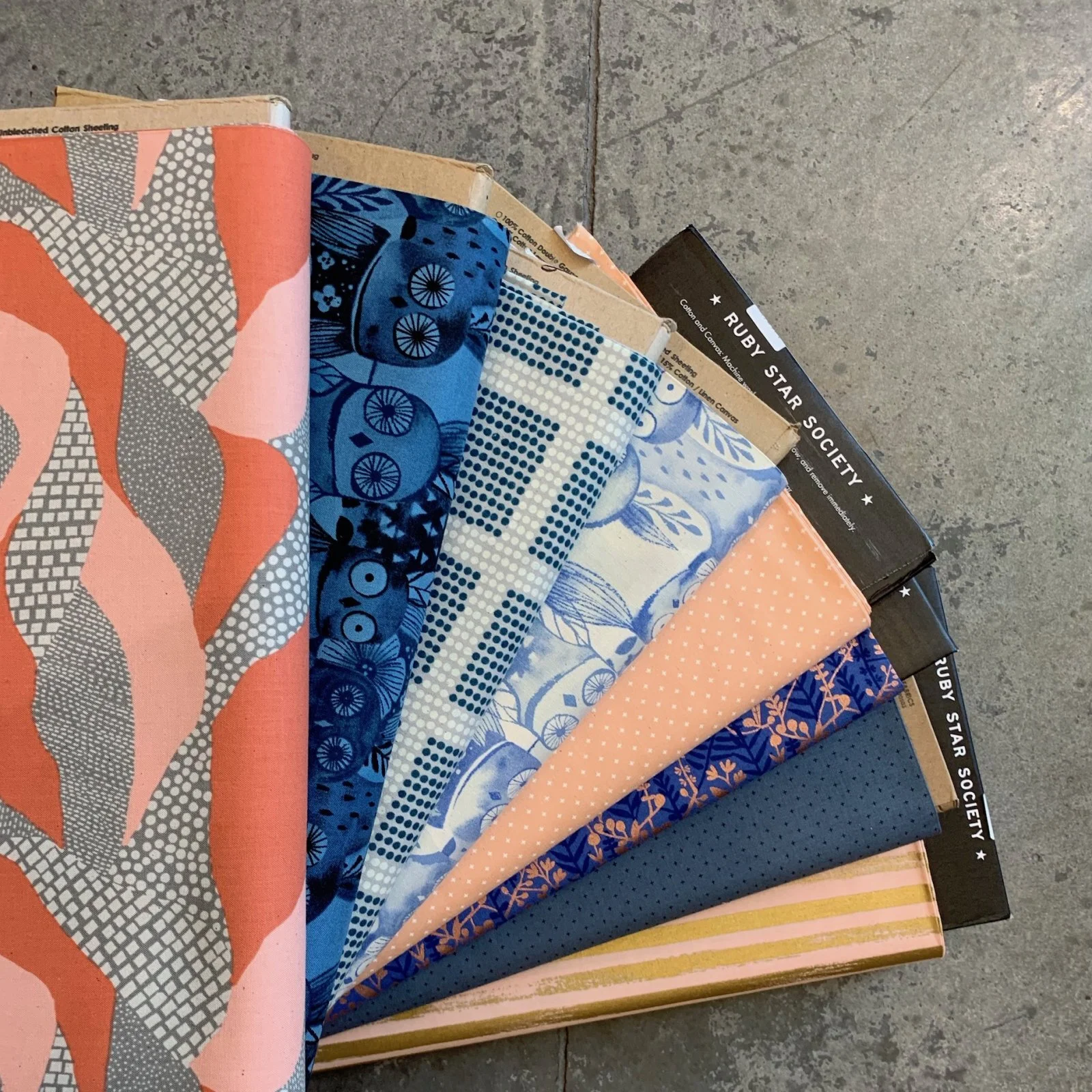 For July I’ve created two 8-piece fabric bundles, each a distinct story.