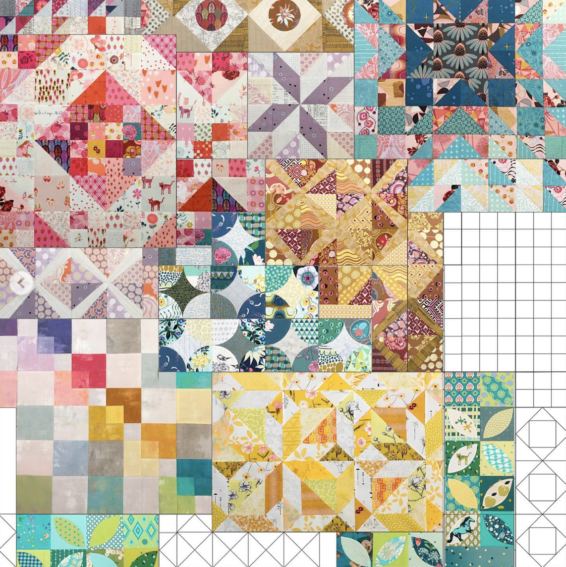 Celebrating:: Nicolette’s innovative take on the Transparency block! Look how she’s used Moda Grunge fabrics to sew such a colorful rendition. What a fantastic idea! Plus, see how it fits beautifully in Nicolette’s Pas de Deux quilt. It connects the reds and purples of the top left section with the yellows, teals and greens of the lower section. Just brilliant! Visit @DutchComfort to see more photos of Nicolette’s Pas de Deux sampler in progress.