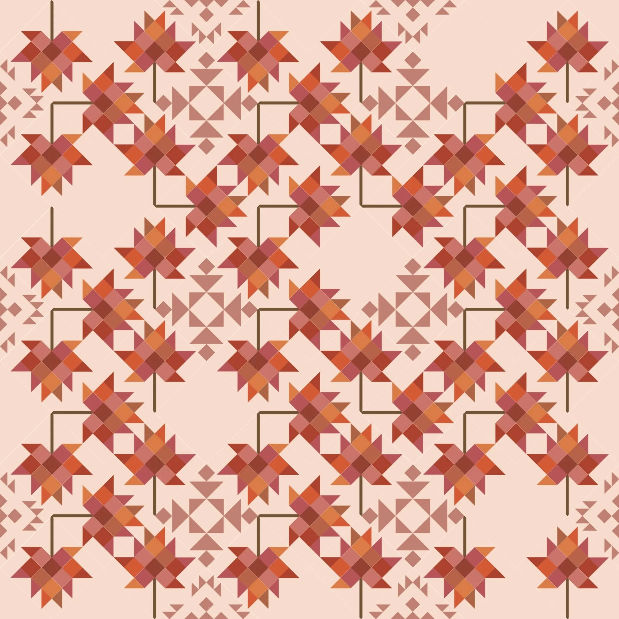 Three unique blocks, sewn with squares and half square triangle units in a traditional manner. No paper piecing or fancy tools or supplies. Just relax with your sewing machine and focus your spirit on color, shape and the wild beauty of nature. The PDF Pattern offers color inspiration for sewing a scrappy version as above or directions to sew leaves from 9 fat quarters.