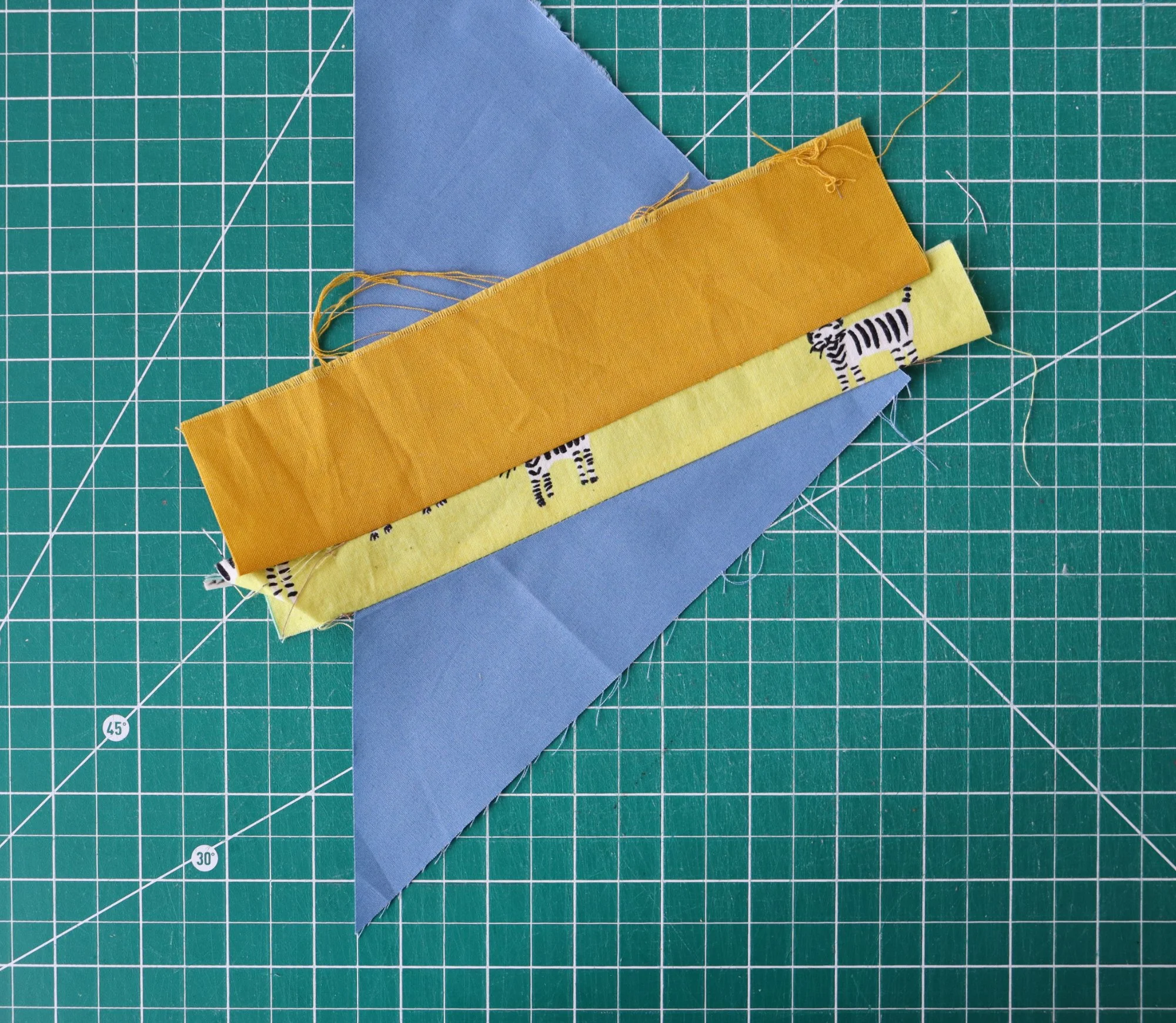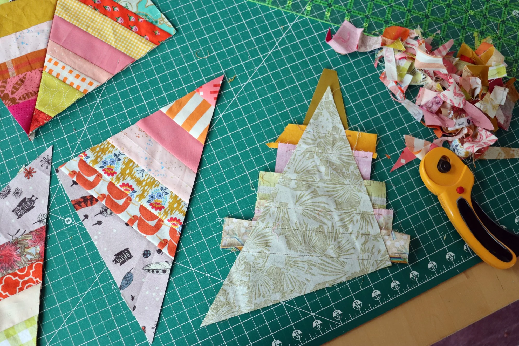 The last step is to trim the excess string scraps equal to the size of the triangle foundation. I love that part! So tidy.