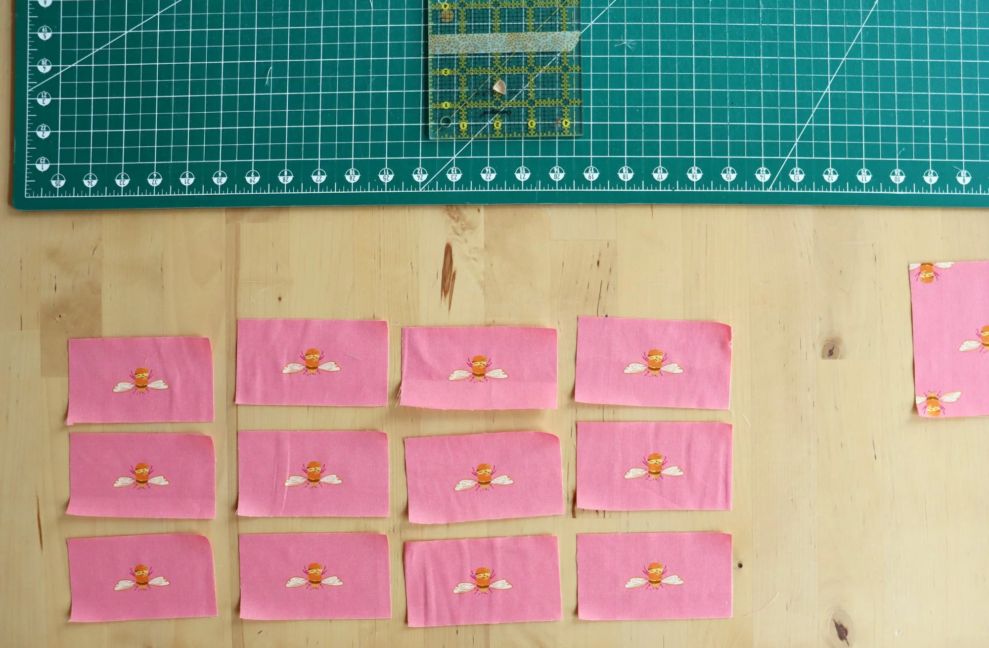 And look at this batch of fussy-cut bees! There is probably no better way to use this adorable Art Gallery print called Marigold Bumble Blush.